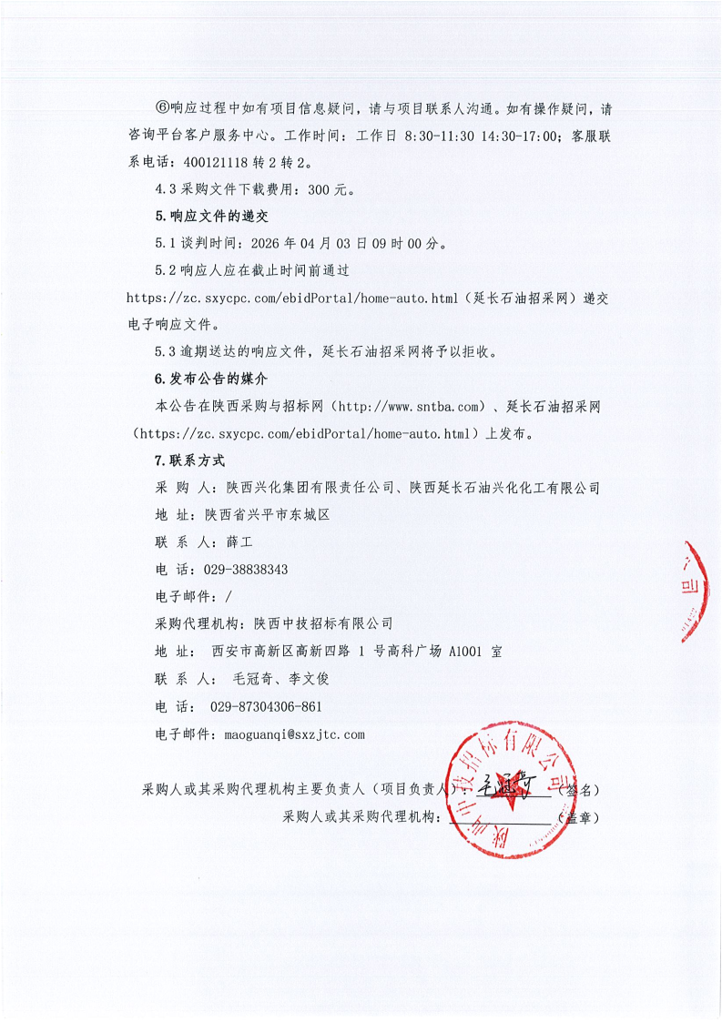 陕西兴化集团有限责任公司、陕西延长石油兴化化工有限公司仪表控制备件框架协议采购项目(价格协议)谈判公告