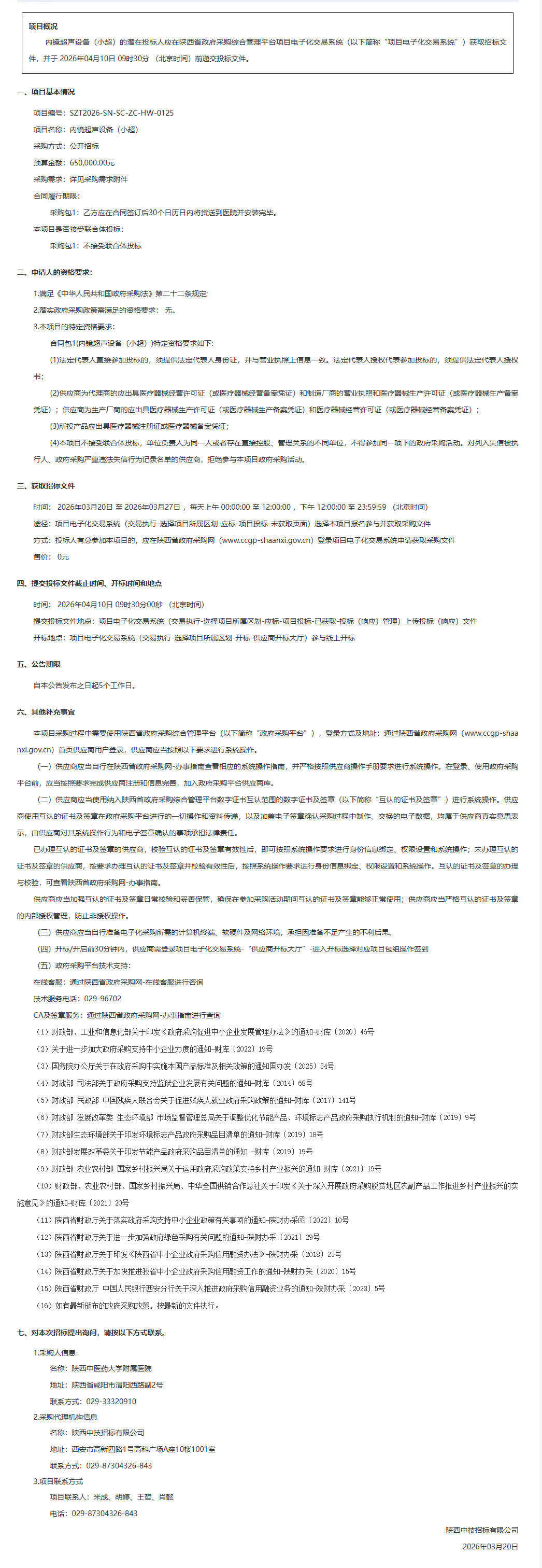 陕西中医药大学附属医院内镜超声设备(小超)招标公告