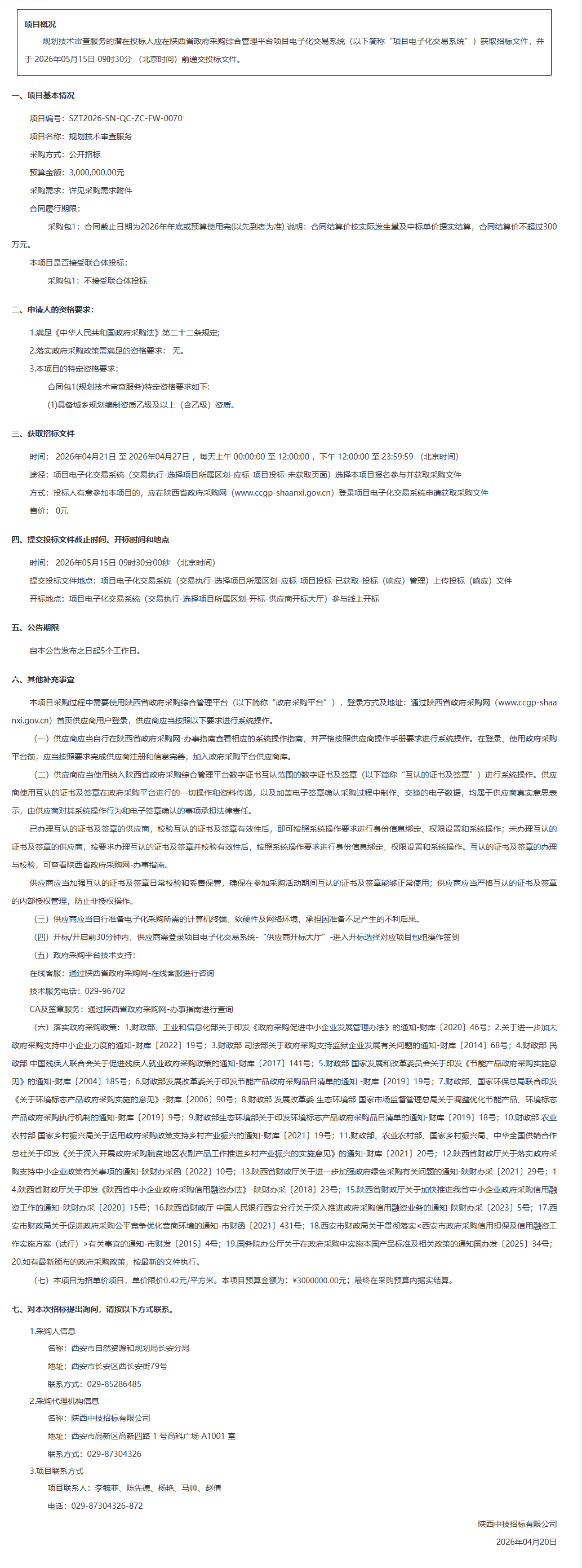 西安市自然资源和规划局长安分局规划技术审查服务招标公告