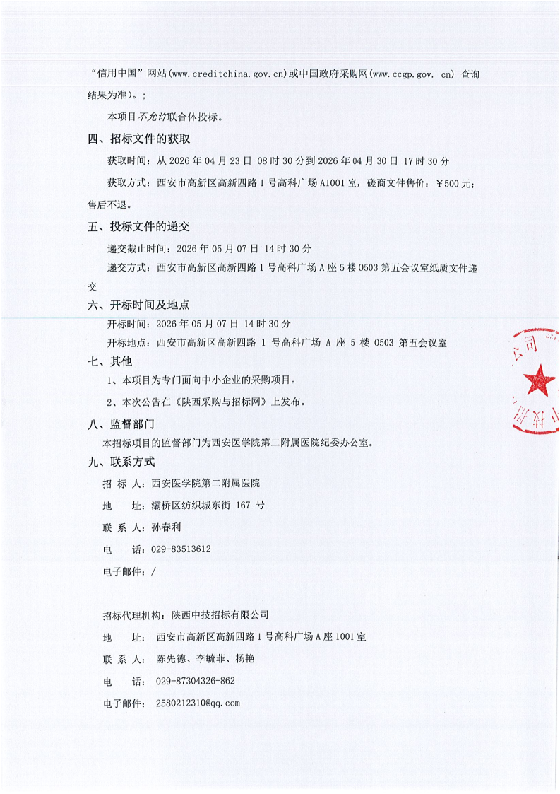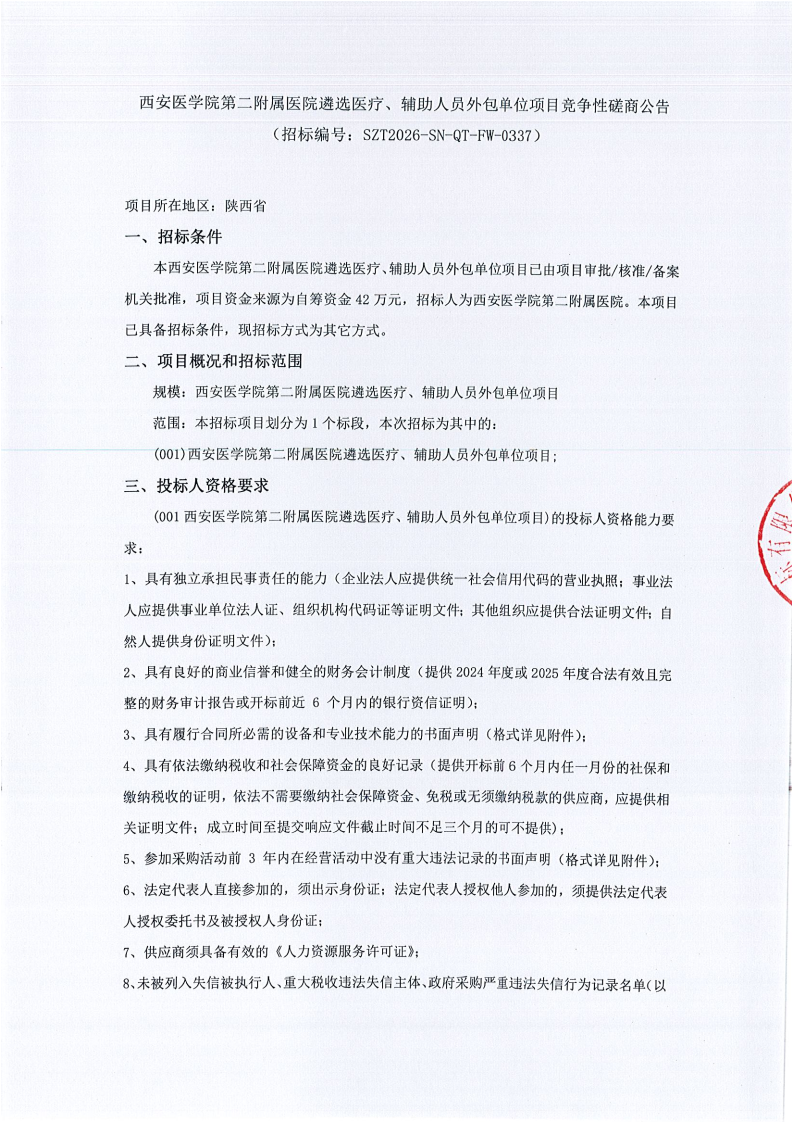 西安医学院第二附属医院遴选医疗、辅助人员外包单位项目竞争性磋商公告