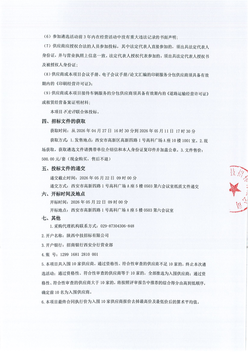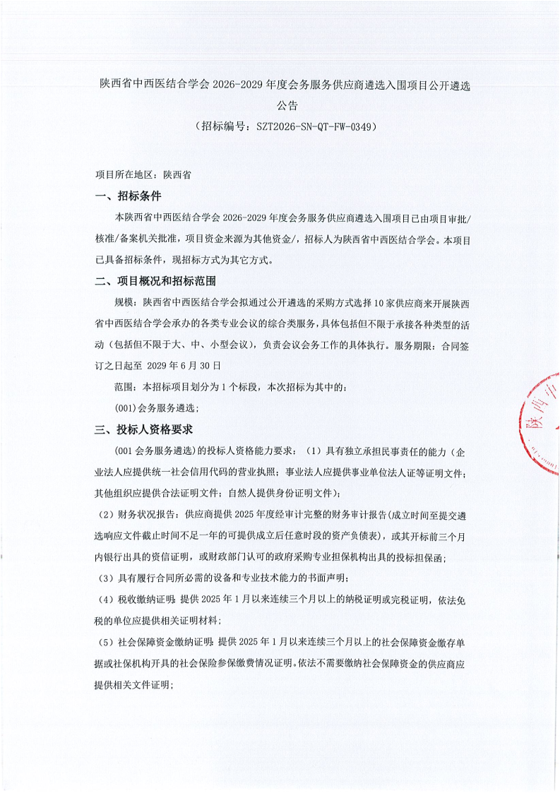 陕西省中西医结合学会2026-2029年度会务服务供应商遴选入围项目公开遴选公告