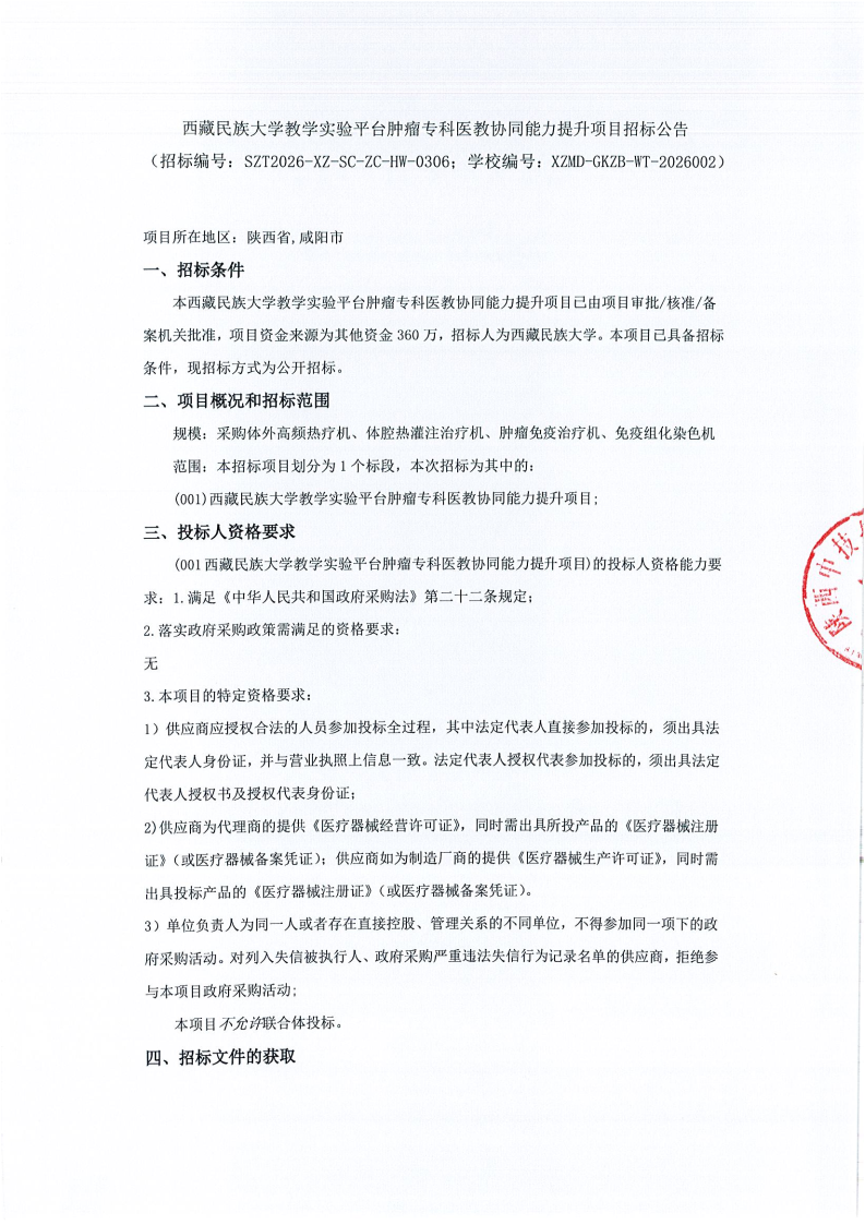 西藏民族大学教学实验平台肿瘤专科医教协同能力提升项目招标公告