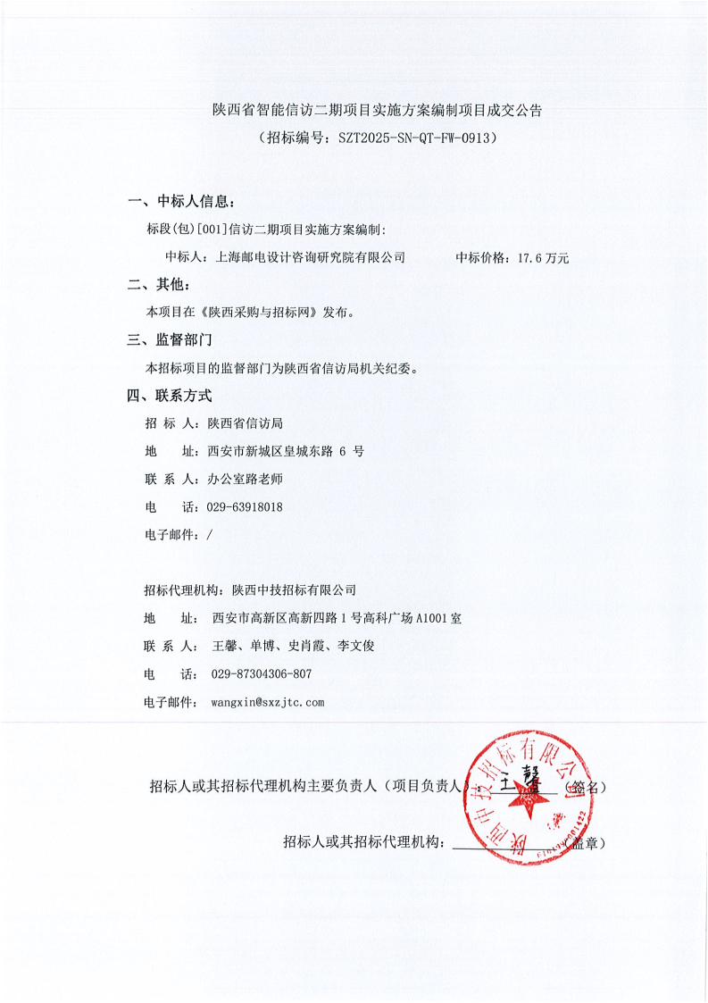 陕西省智能信访二期项目实施方案编制项目成交公告