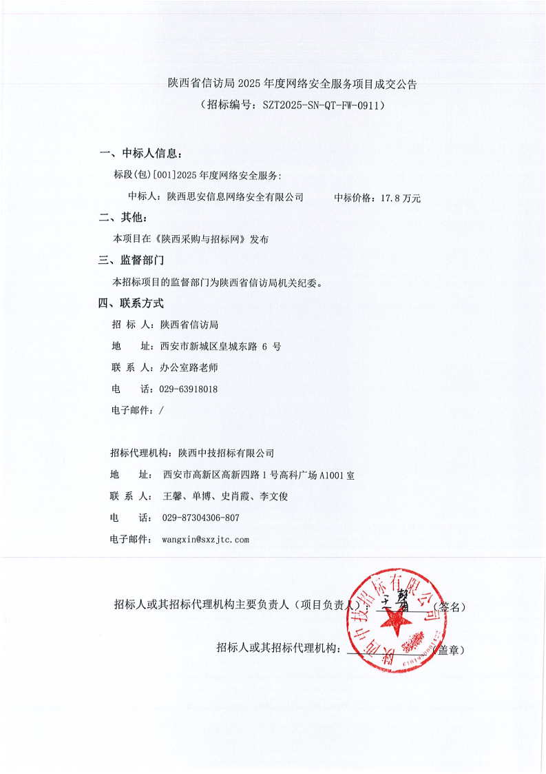 陕西省智能信访二期项目实施方案编制项目成交公告
