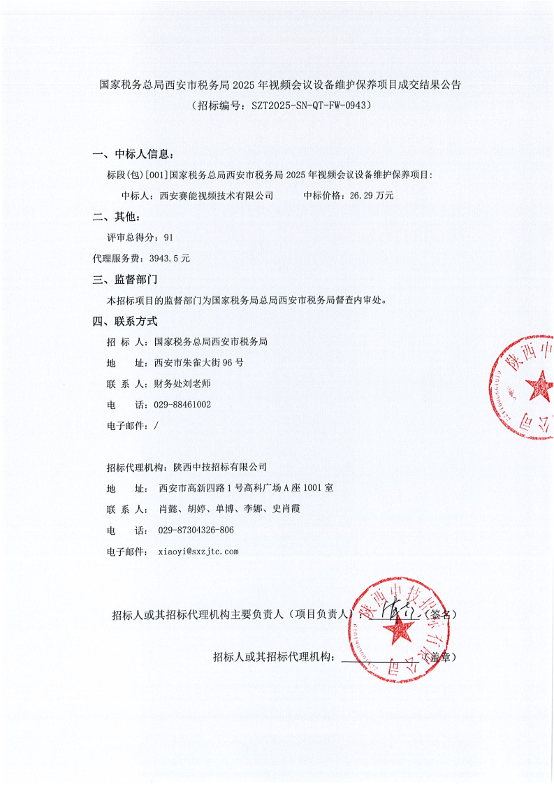 国家税务总局西安市税务局2025年视频会议设备维护保养项目成交公告