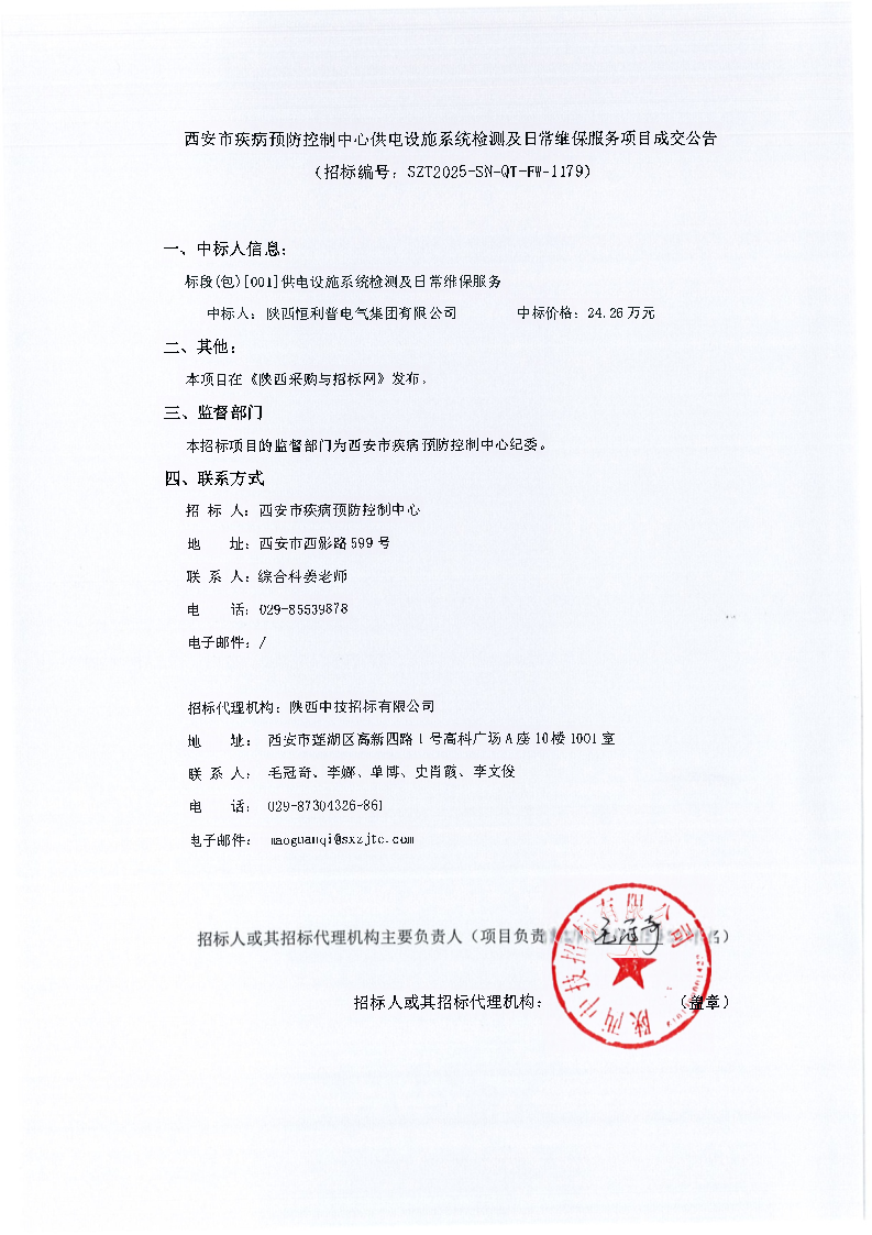 西安市疾病预防控制中心供电设施系统检测及日常维保服务项目成交公告