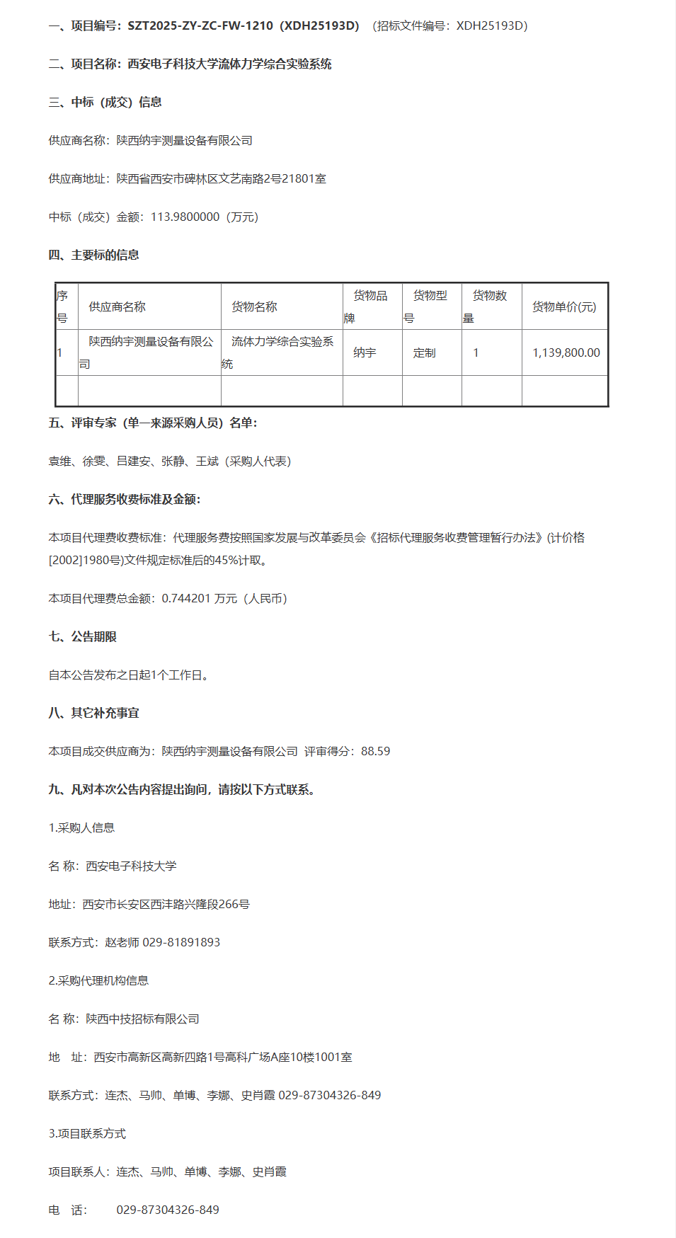 西安电子科技大学流体力学综合实验系统成交公告