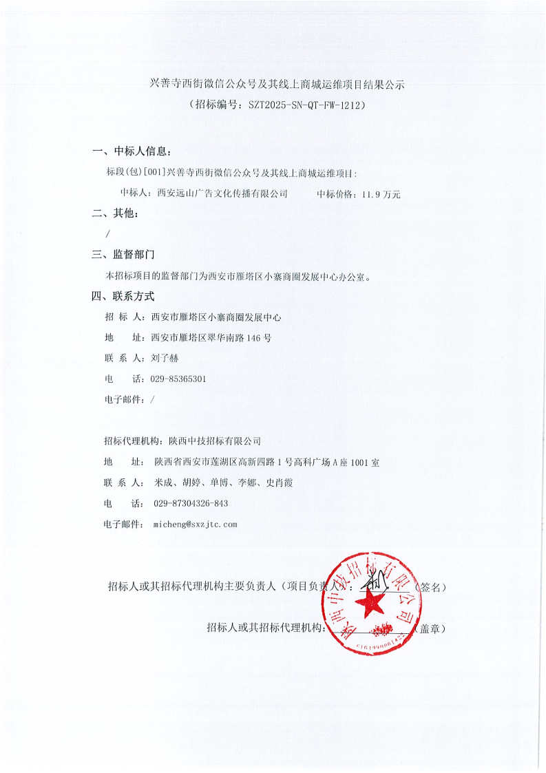 兴善寺西街微信公众号及其线上商城运维项目结果公示