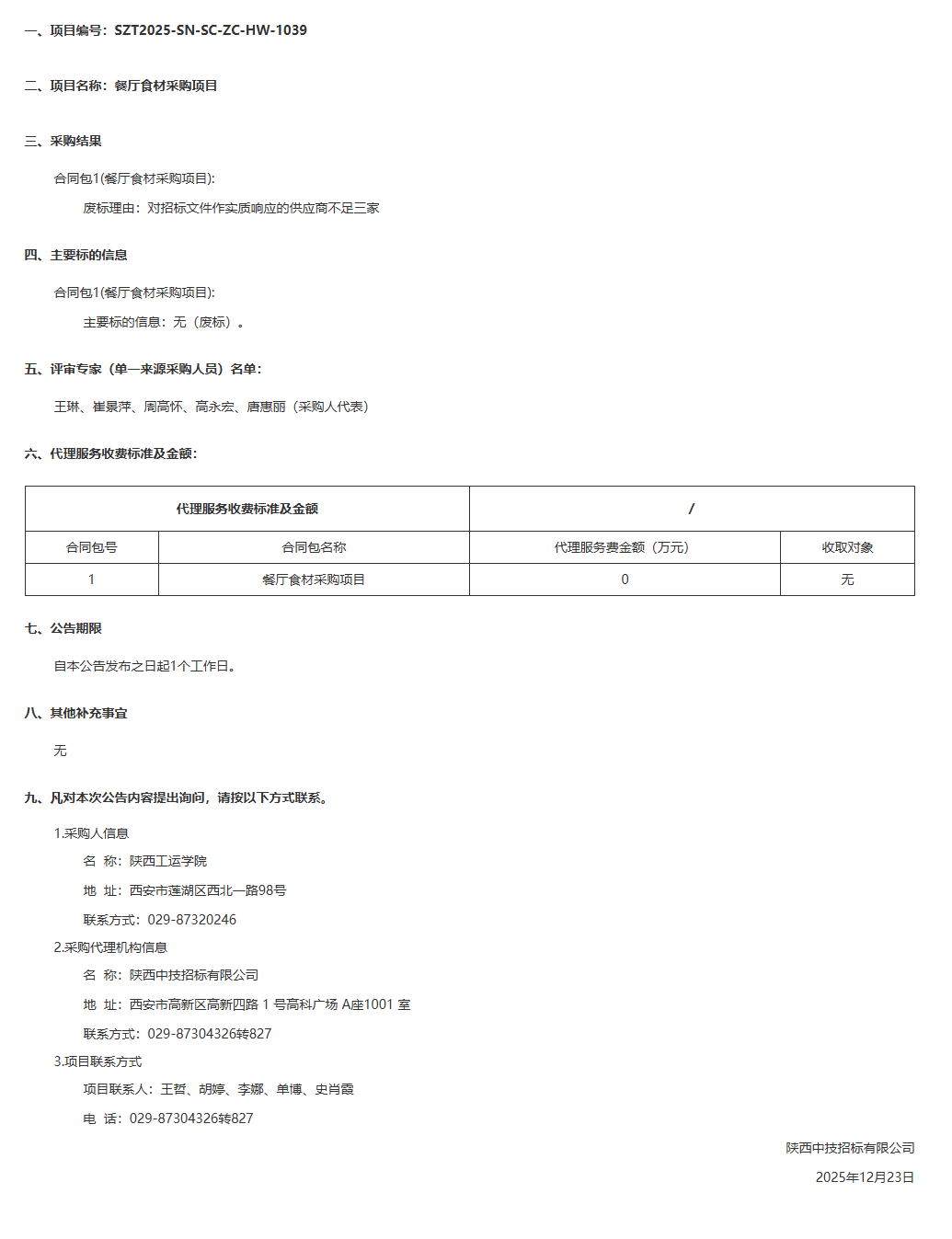 陕西职业技术学院AI工坊建设项目(三次)中标(成交)结果公告