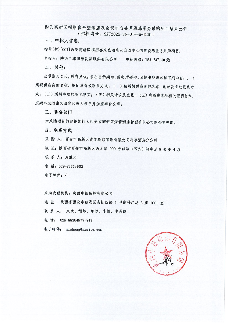 西安高新区福朋喜来登酒店及会议中心布草洗涤服务采购项目结果公示