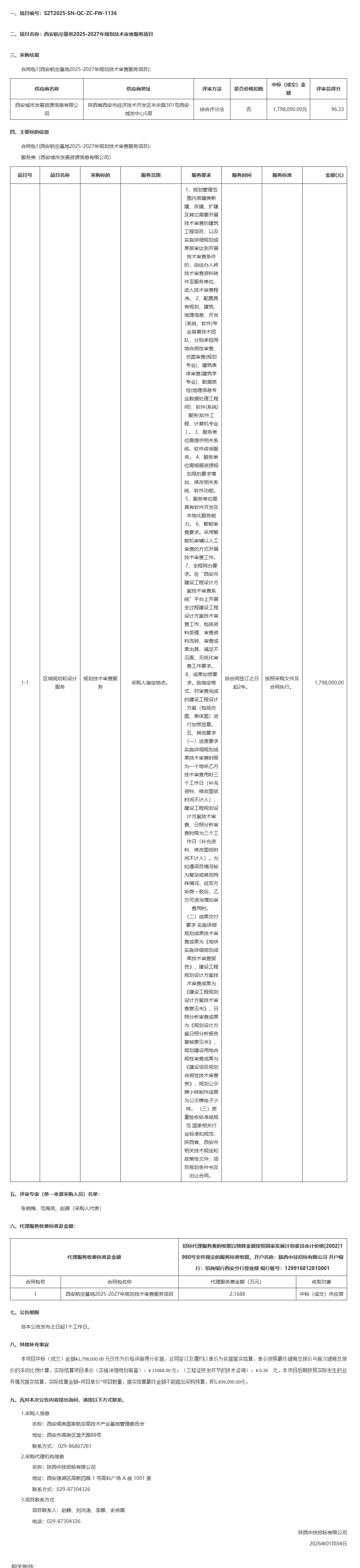 西安阎良国家航空高技术产业基地管理委员会西安航空基地2025-2027年规划技术审查服务项目中标(成交)结果公告
