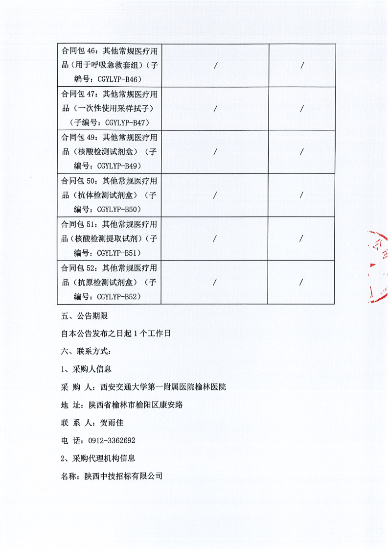 西安交通大学第一附属医院榆林医院医用耗材采购项目-基础卫生材料-避孕材料遴选(二次)(合同包1-3)院级磋商结果公告