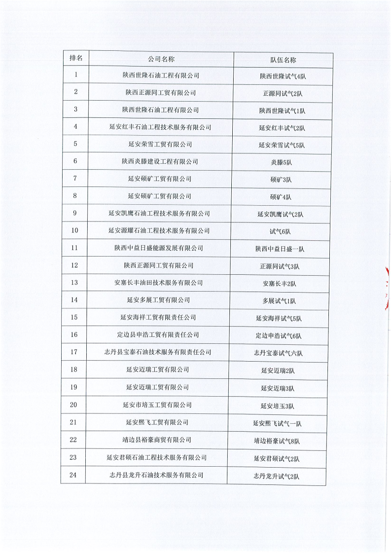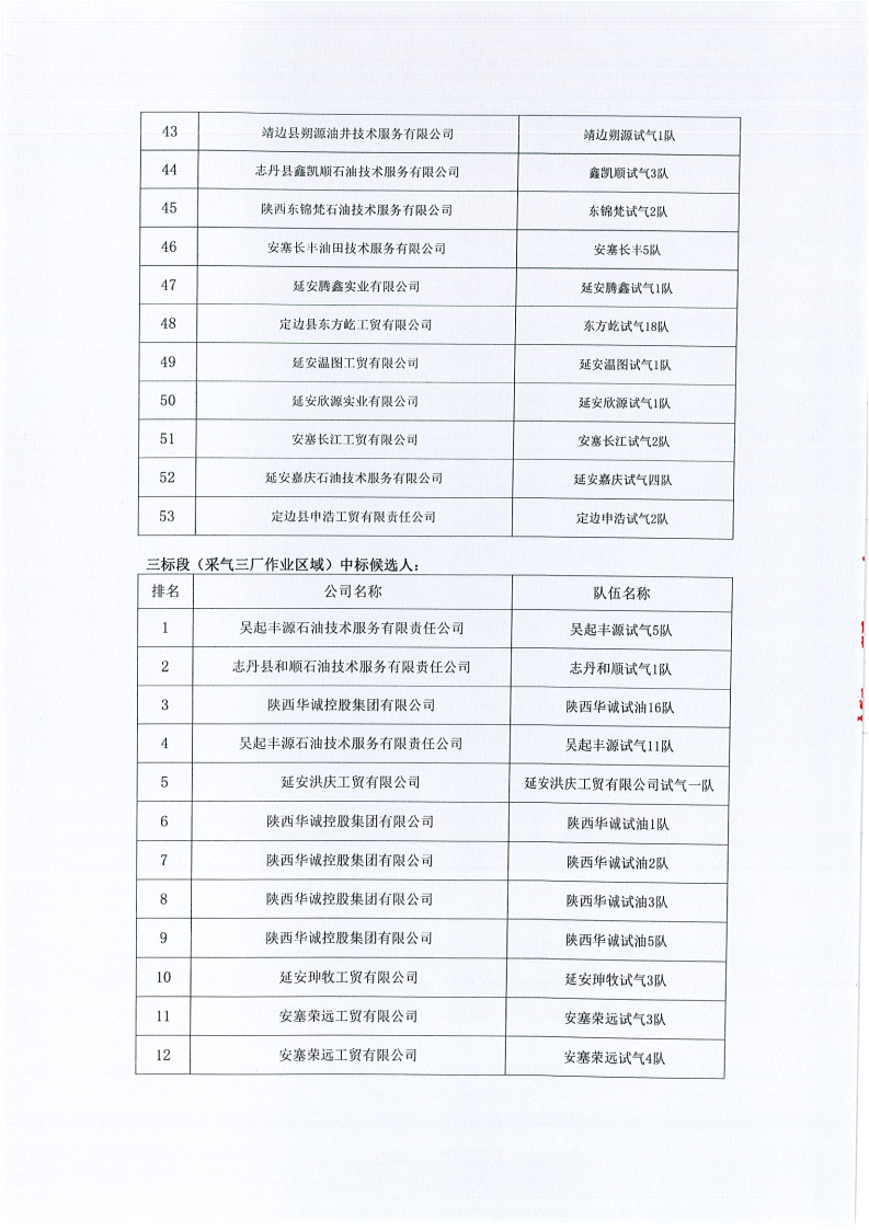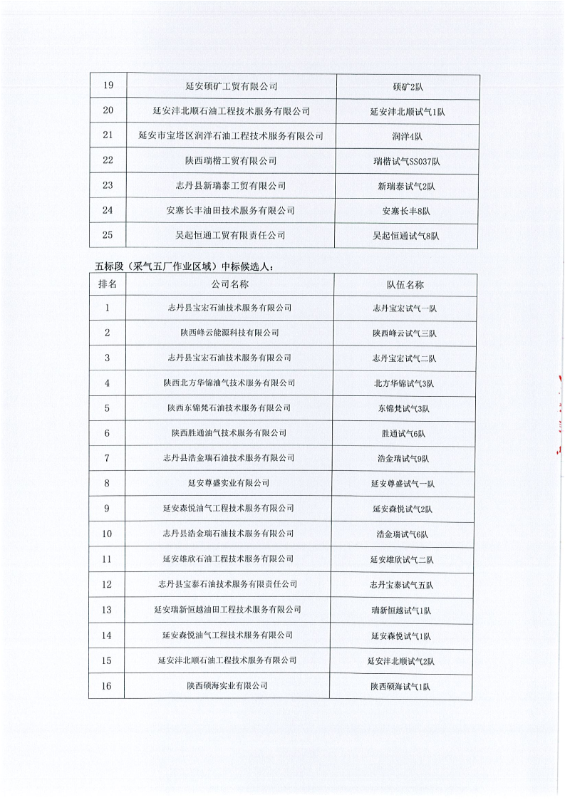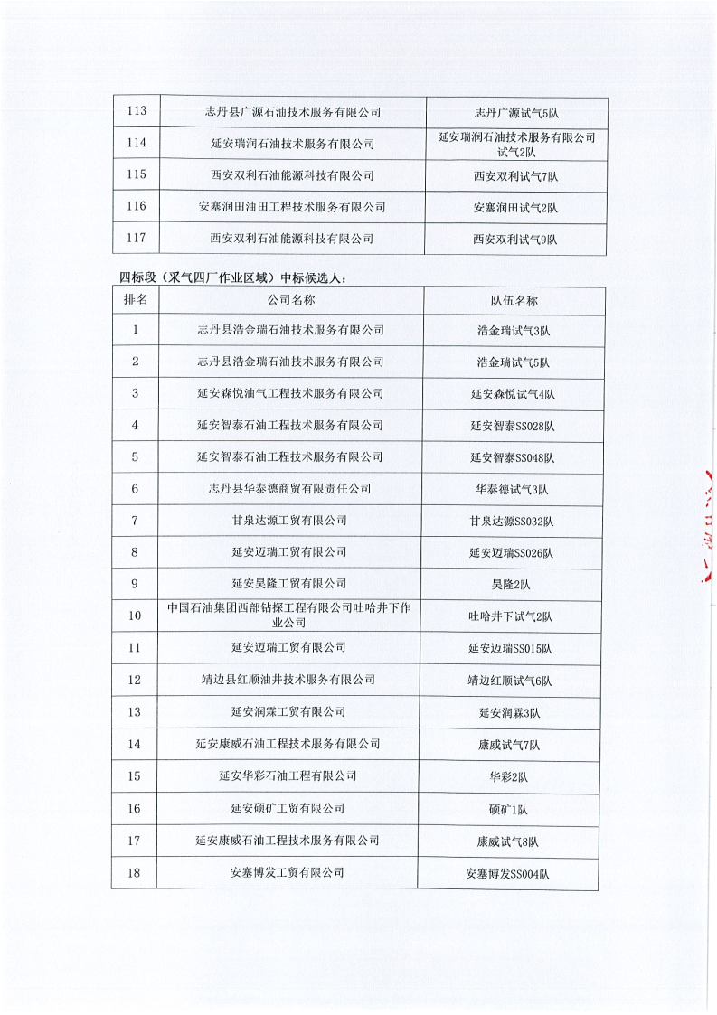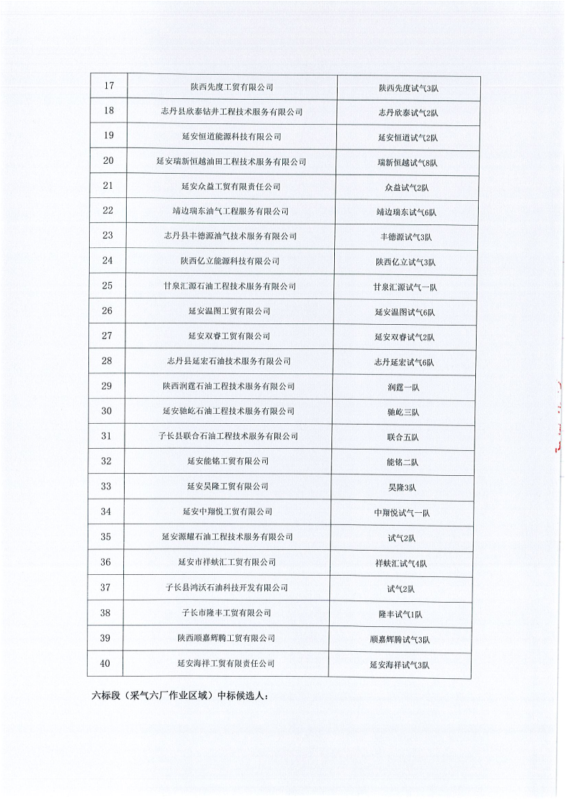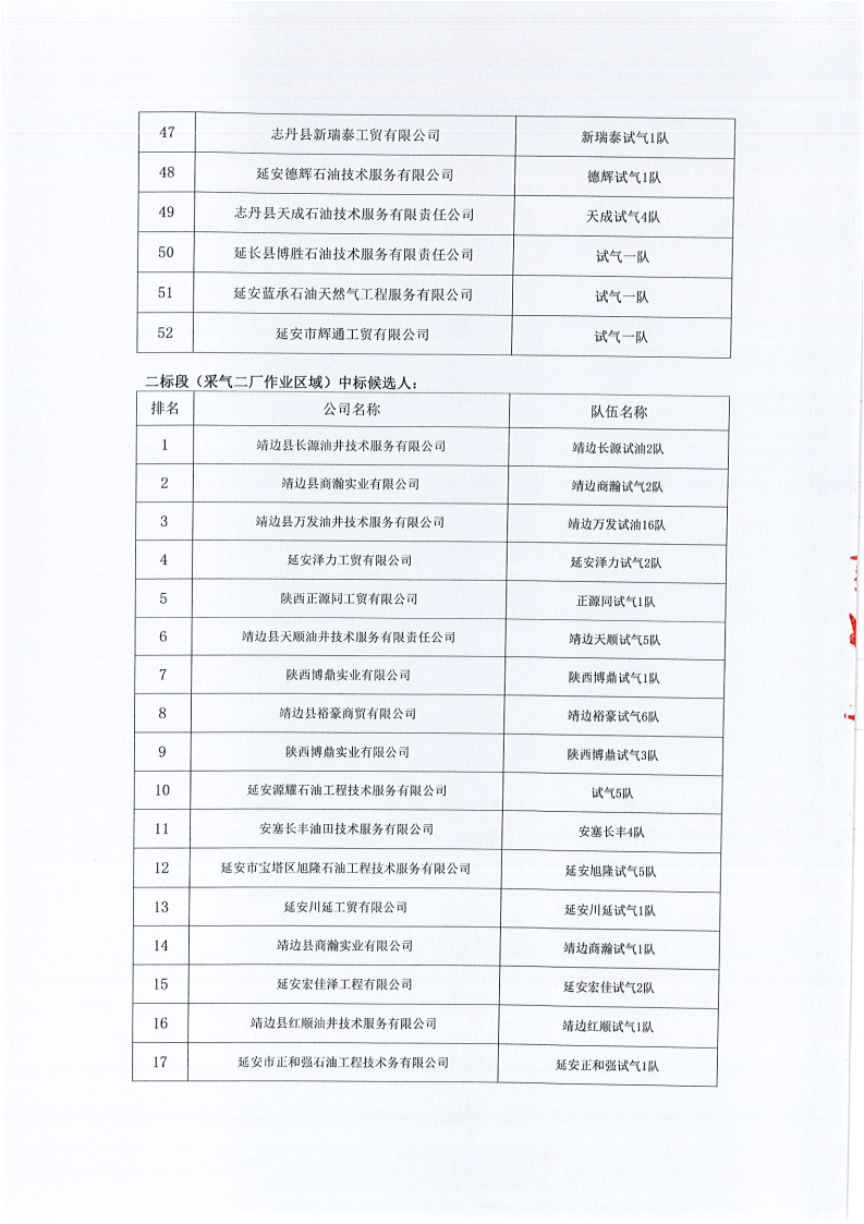 气田公司天然气井固井作业队伍框架协议招标项目中标候选人公示