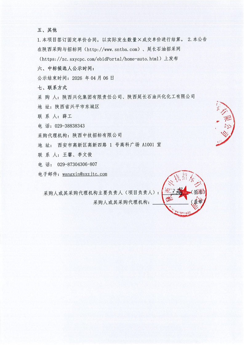 陕西兴化集团有限责任公司、陕西延长石油兴化化工有限公司仪表控制备件框架协议采购项目(价格协议)项目成交候选人公示